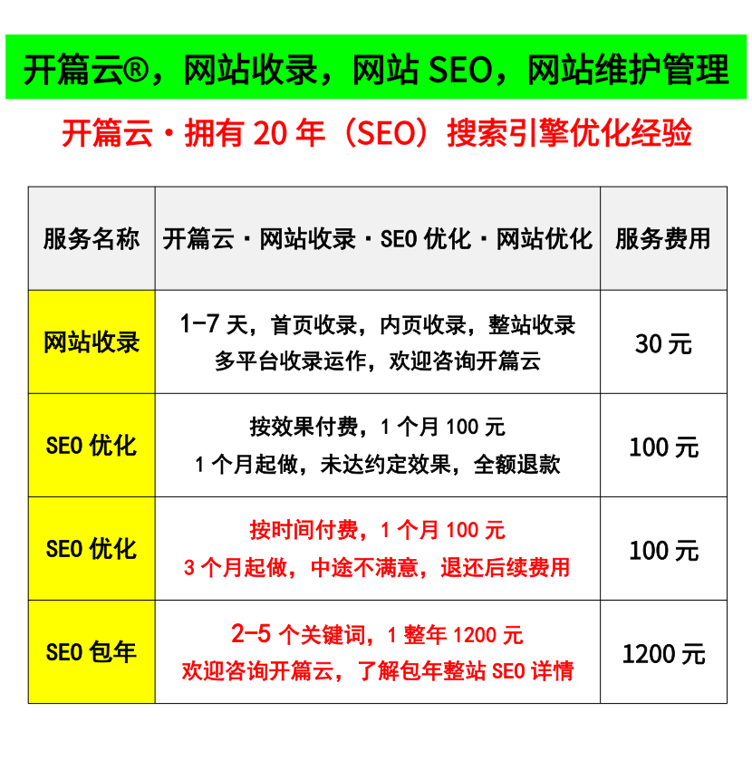開(kāi)篇云SEO優(yōu)化:SEO搜索引擎優(yōu)化提升關(guān)鍵詞排名! 咨詢(xún)熱線(xiàn):18961355063